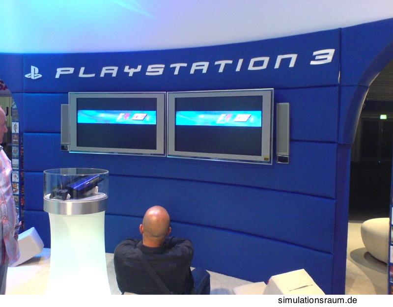 Sony hat neben der Vorstellung ihrer BluRay-Hardware und – wie die meisten anderen Ifa-Ausseller auch – der Präsentation ihrer HD-fähigen Fernseher auch eine kleine Ecke für die PS3 reseviert. Leider war das Gerät wohl nur ein Dummy und deshalb unter Plexiglas zu bewundern, während im Hintergrund ein Demofilm zu einem Formel-1-Spiel ablief, der ganz passabel aussah: