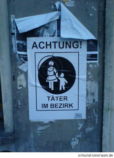 In Berlin angekommen, in Friedrichshain Residenz bezogen – stilecht in einem Haus an dem ein Serientäter-Such/Warnplakat prangt: