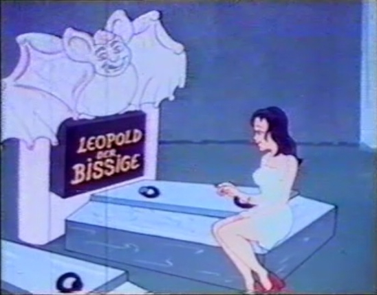 Dieser Film im Film handelt davon, dass während einer Schlossführung im alten Gemäuer derer zu Beißensteins eine Teilneherin die Reisegruppe verlässt und sich auf dem Sarg von Leopold dem Bissigen niederlässt und dort einschläft. Bald darauf erscheint der Ahnherr und verfolgt den Geist der schlafenden kreuz und quer durch das Schloss. Die Verfolgungsjagd dauert eine Weile und macht auch ein Gespensterpärchen auf das Treiben aufmerksam, dass ob des Krachs und Gestöhnes beschließt, das Schloss zu verlassen. Irgendwann erwischt Leopold die Frau dann und macht aus ihre eine Vampirin.