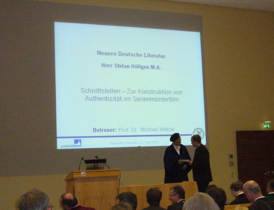 Am Samstag habe ich im Rahmen der feierlichen Promotion meine Doktor-Urkunde entgegen genommen. Angesichts des per Overhead an die Wand projezierten Titels meiner Dissertation ging ein (erwartetes) Raunen durch die Runden und der Dekan schüttelte mir mit den Worten „Grausames Thema!“ die Hand. Ich scheine also alles richtig gemacht zu haben.